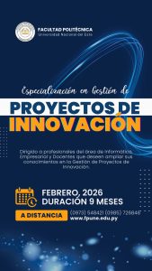 La Facultad Politécnica de la Universidad Nacional del Este (UNE) lanza el Programa de Especialización en Gestión de Proyectos de Innovación, una propuesta académica 100 % a distancia orientada a profesionales que buscan actualizarse y fortalecer su perfil laboral.