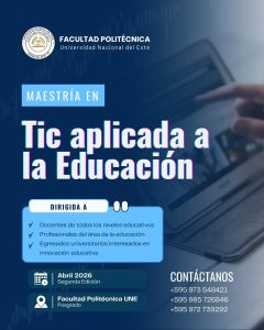 La Facultad Politécnica de la Universidad Nacional del Este (FP-UNE) se prepara para dar inicio a su programa de Maestría en TIC Aplicadas a la Educación. El postgrado busca dotar a docentes y profesionales de herramientas tecnológicas avanzadas para modernizar los procesos de enseñanza y aprendizaje.Actualmente las inscripciones están abiertas y es con cupo limitado.
